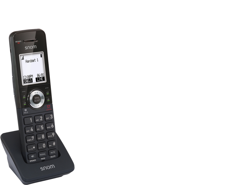 Das Snom M10 SC Mobilteil kombiniert elementare Anruffunktionen, z. B. das Halten oder Weiterleiten von Gesprächen mit glasklarer Audioqualität.