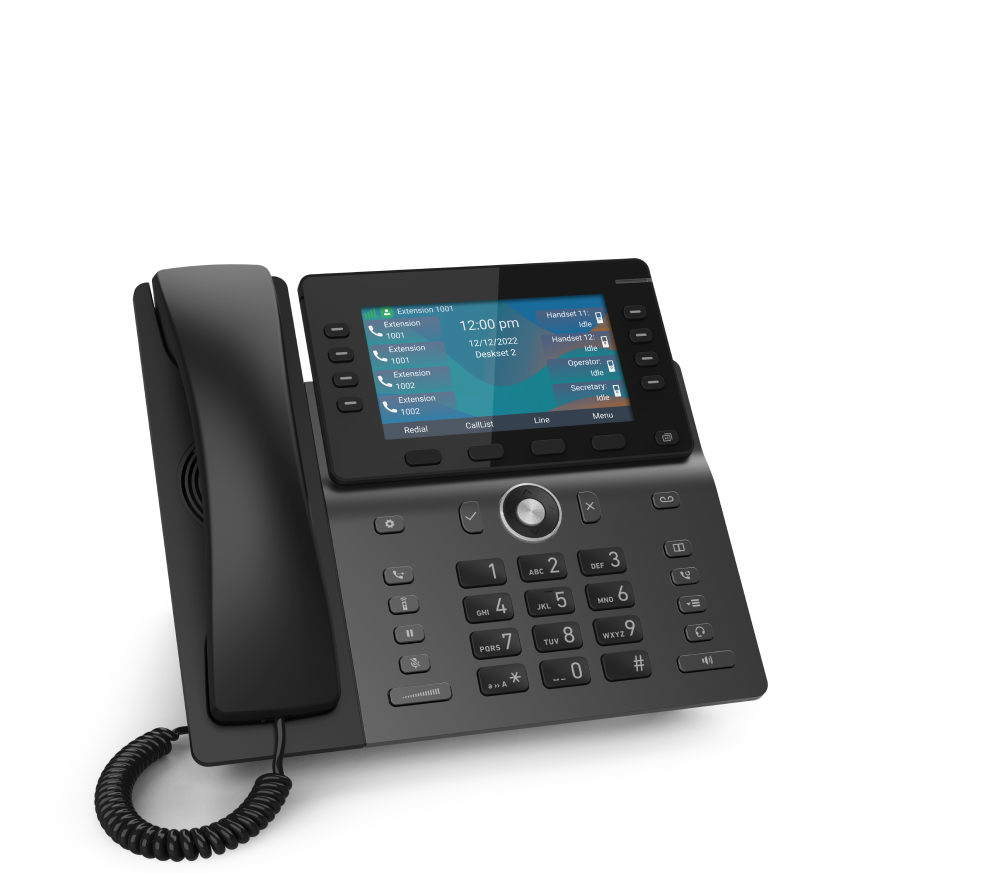 Mit dem großzügigen 5″-Farbdisplay, integrierter Shared Call Emulation Funktion und dem neuen Design, steht dem Anwender ein vollwertiges Tischtelefon zur Verfügung.