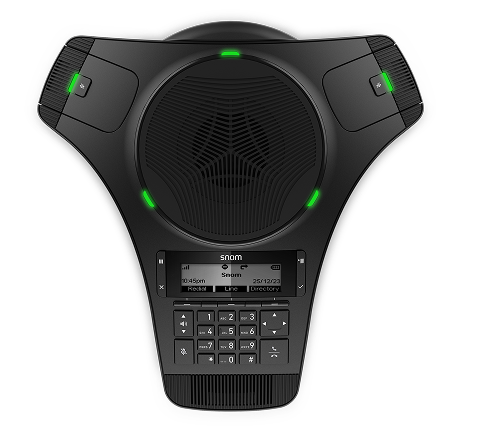 Thanks to modern DECT technology, our Snom C620 is the perfect companion for conferences. It has three microphones. One microphone is built into the base unit with the full-duplex loudspeaker and the two other, cordless, DECT microphones can be placed freely in the room or worn. The Snom C620 can be extended as required to cover larger rooms. To do this, simply connect the Snom C52-SP extension speakers wirelessly to the base unit.