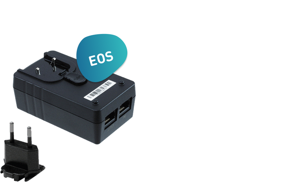 The Snom A5 PoE Injector makes it possible to add a power supply via Power over Ethernet (PoE). Simply plug the incoming network cable to the phone into the input of the Snom A5 and connect it to the phone with a second network cable (not included). As soon as you plug the Snom A5 into the power outlet, your Snom device will be supplied with the necessary power. Since the Snom A5 offers power up to PoE class 3, you can connect any Snom device that draws power via PoE.