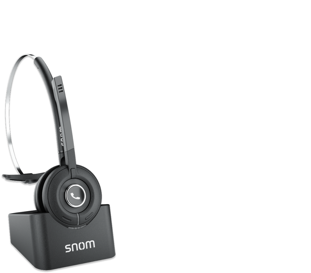 The Snom A190 is a lightweight and extremely flexible DECT headset that, like all handsets in the Snom M-Series, can be used in both single and multi-cell mode and also offers perfect audio quality. With an indoor range of up to 50m and an outdoor range of up to 300m (in clear view), it allows for enormous freedom of movement.