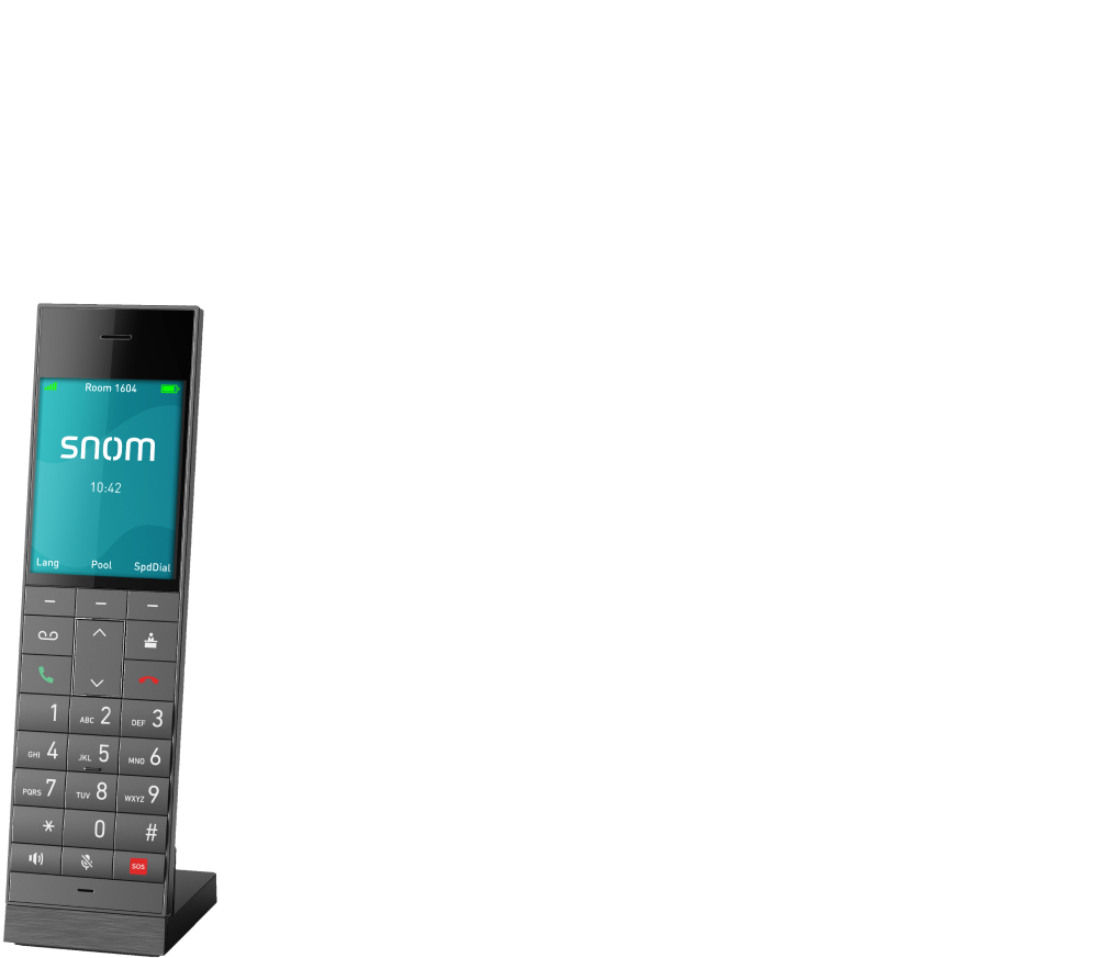 With the Snom HM2, you can expand your Snom HM201 with up to four additional cordless handsets and thus offer your guests all the benefits in a larger space, as you can make calls in up to five locations/rooms.