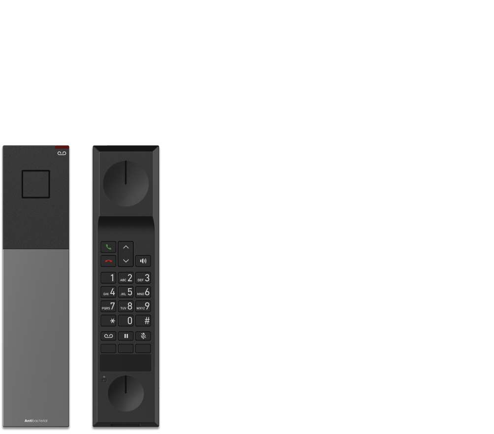 Además de la cubierta del microteléfono suministrada con aspecto de metal de cañón, ahora puede adquirir una de las tres cubiertas intercambiables adicionales en blanco perla, negro o plata. Fáciles de colocar sin herramientas, ¡una pequeña inversión que marca la diferencia según el entorno!