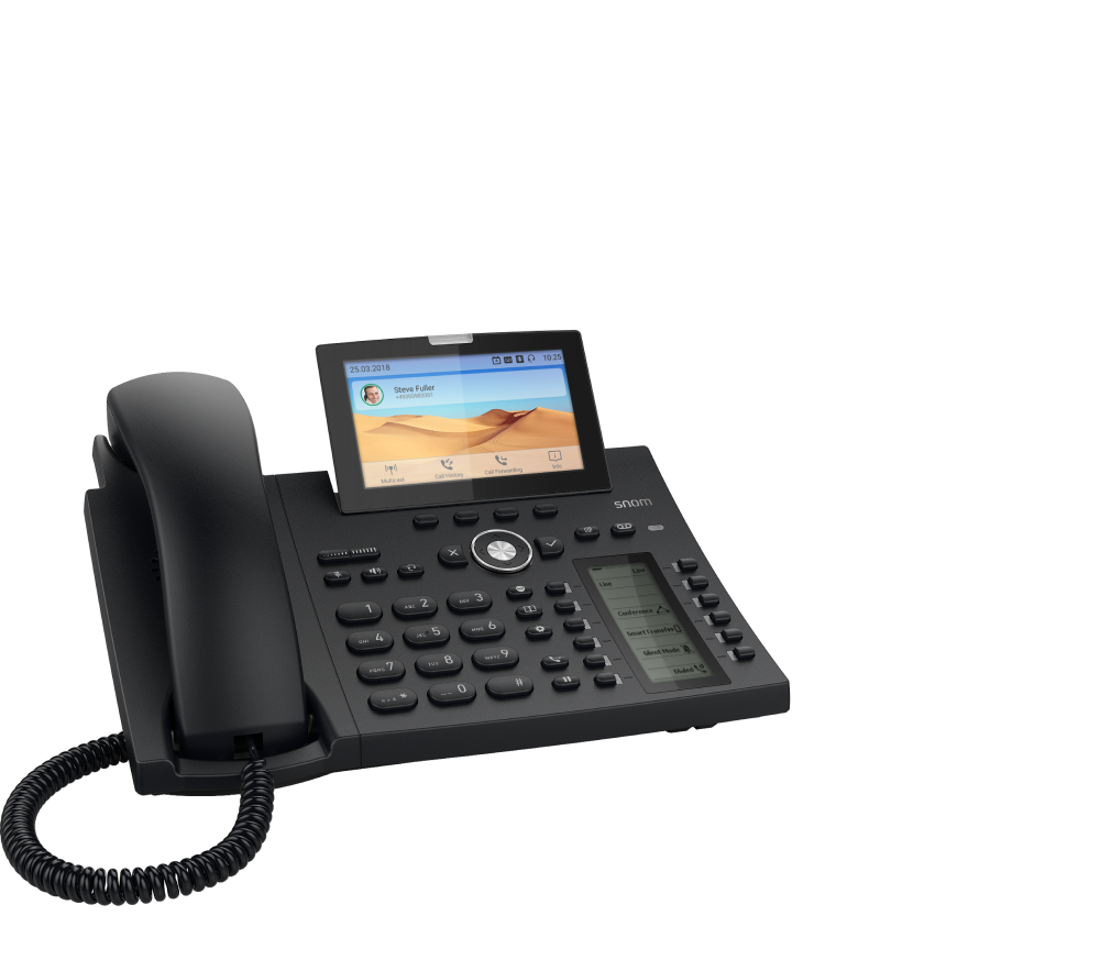 El Snom D385 encaja a la perfección en cualquier entorno de oficina gracias a sus versátiles funciones y a su diseño atemporal. Además de la pantalla en color inclinable de alta resolución, el Snom D385 cuenta con una segunda pantalla adicional, que hace que el tedioso etiquetado de las teclas de función sea cosa del pasado.