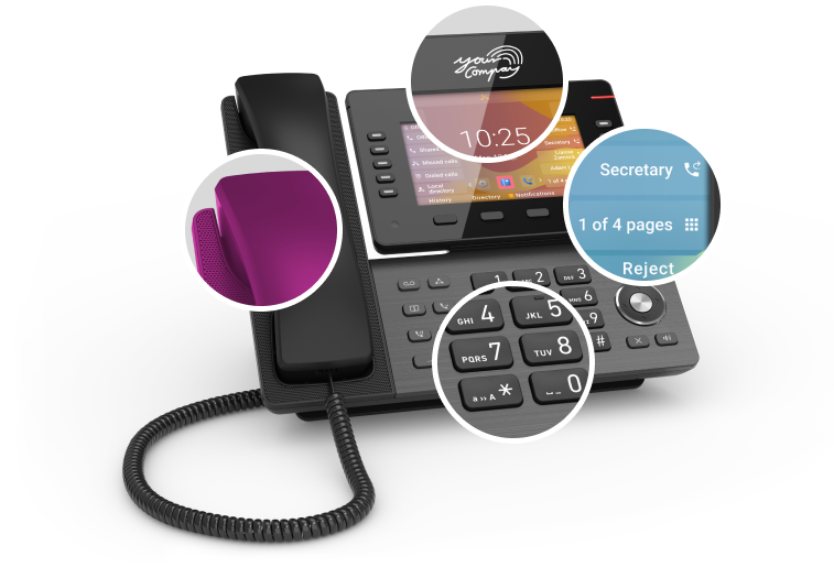 Les téléphones de bureau Snom peuvent être hautement personnalisés. Outre la possibilité de personnaliser l'interface utilisateur du téléphone, la plupart des modèles peuvent également être personnalisés physiquement.