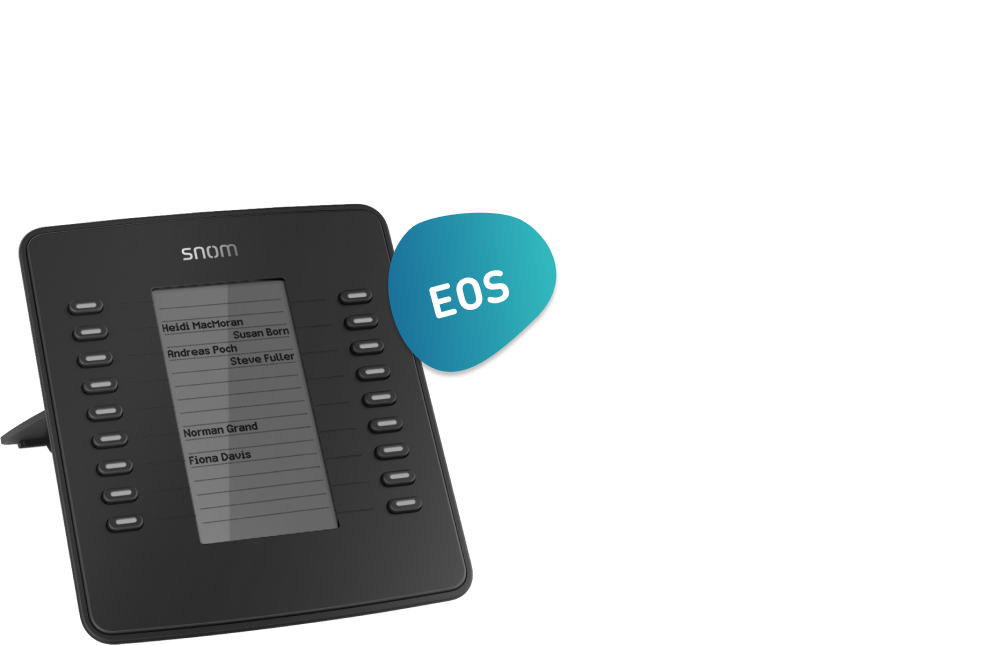 Le Snom D7 avec son écran noir et blanc haute résolution peut être facilement connecté via plug-and-play à l'aide d'un câble USB. Jusqu'à trois modules d'extension peuvent être connectés en série pour étendre considérablement la gamme de fonctions. Cela fournit jusqu'à 54 touches de fonction supplémentaires.