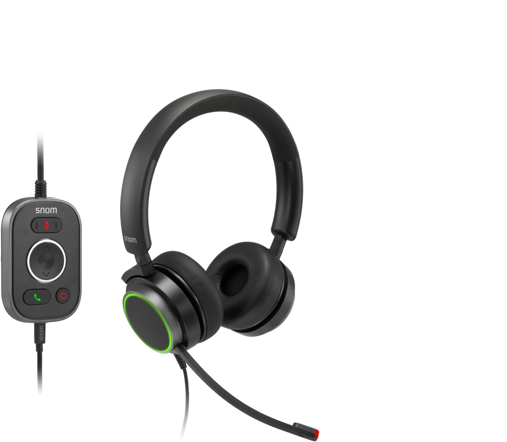 Utilizzabili tramite il jack da 3,5, queste cuffie possono anche essere collegate a un telefono fisso IP Snom o a un computer tramite USB. Si prestano quindi perfettamente sia per le telefonate standard sia per l'uso con le principali piattaforme software di comunicazione.